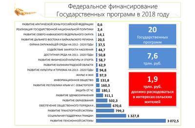 Исходя из численности сельского населения по всем этим программам 1,9 трлн. рублей должны расходоваться в интересах сельских жителей. Это ключ к эффективному развитию деревни.