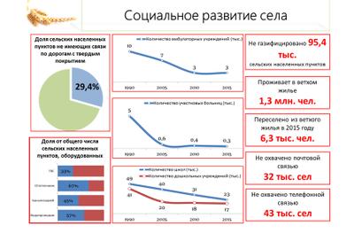 В период с 1995 года на сельских территориях больничных учреждений стало меньше на 4,5 тысячи, фельдшерско-акушерских пунктов – меньше на 13 тыс. единиц, станций скорой медицинской помощи – меньше на 657 единиц. Сегодня средний радиус доступности ФАПа - 15, больницы - 85 км, а детского сада или школы – 17-20 км.