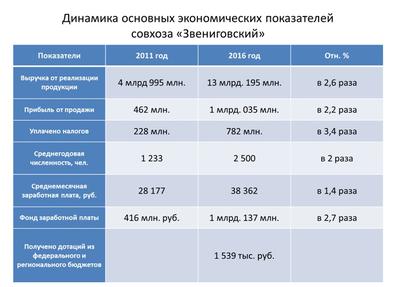 Все это подтверждается примерами. Посмотрите – Совхоз имени Ленина, или Совхоз «Звениговский» – на 13 млрд. производит продукции, кредиты не берет, 1 млрд. руб. платит налогов и получает при этом всего 1, 7 млн. рублей дотаций.