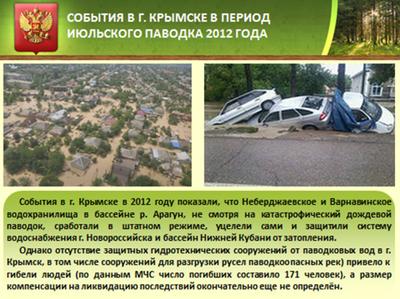 В подобной ситуации в любой момент могут оказаться многие населенные пункты РФ, расположенные в нижних бьефах ГТС и в поймах водных объектов, особенно города и поселения в предгорьях северного Кавказа, Алтая, Приморья и т.п.