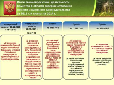 Итогом стал Федеральный закон № 415-ФЗ «О внесении изменений в Лесной кодекс Российской Федерации и Кодекс Российской Федерации об административных правонарушениях», направленный на решение вопросов учёта необработанной древесины и контроля за её оборотом.