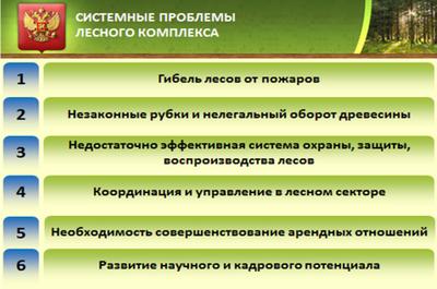 Далее. Требуют совершенствования арендные отношения, и вопросы лесоустройства, правовой режим отдельных видов лесов. Это - наши ближайшие задачи на год текущий.