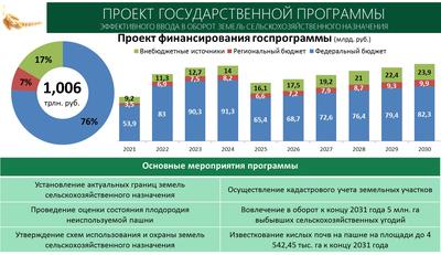 Второе – утвердить государственную программу вовлечения в оборот заброшенных земель сельскохозяйственного назначения и развития мелиоративного комплекса Российской Федерации, исполнив тем самым решение Государственного Совета Российской Федерации и соответствующее поручение президента.