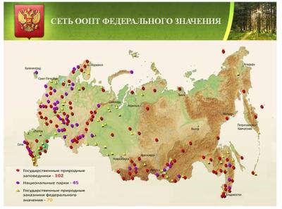 Современная сеть ООПТ федерального значения охватывает территорию России неравномерно: в основном они сосредоточены в европейской части, на юге Сибири и Дальнего Востока. Репрезентативность ООПТ федерального значения явно недостаточна.