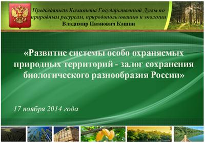 Доклад Председателя Комитета Государственной Думы по природным ресурсам, природопользованию и экологии В.И. Кашина на тему: «Развитие системы особо охраняемых природных территорий - основа сохранения биологического разнообразия России», 17 ноября 2014 года.