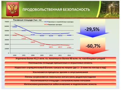 Площадь природных кормовых угодий России составляет около 60,0 млн.га и имеет тенденцию к сокращению за счет деградации степей, зарастания лугов в границах лесной зоны и лесного пояса гор (забрасываемых сенокосов и пастбищ) лесов.