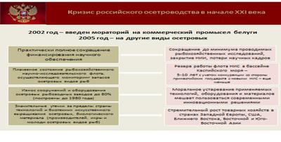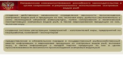 Таким образом, российское законодательство уже сегодня предусматривает все необходимые регуляторы для создания условий сохранения осетровых видов рыб.