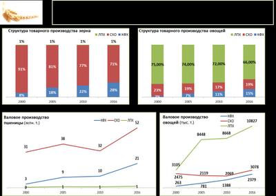Уже 28% сельскохозяйственных угодий и пашни находится у крестьянских хозяйств, фермеров, а так же индивидуальных предпринимателей. А если учесть еще и хозяйства населения, почти не вовлеченные в кооперацию, то можно говорить о 37% фонда сельскохозяйственных угодий.