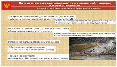 Также Правительством Российской Федерации принят ряд программ, направленных на развитие минерально-сырьевой базы: