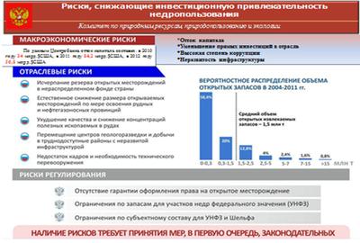 Истощение накопленного за десятилетия поискового задела – участков недр, готовых для предоставления в пользование инвесторам связано с недофинансированием государством геологоразведочных работ начальных стадий, которое, начиная с 2008 г., составило около 40 млрд. руб.