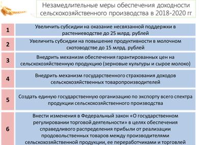 И в этой части мы не сможем обойти стороной вопросы почвенного плодородия и мелиорации, технической вооруженности и обновления основных фондов, семеноводства и племенного дела, научного и кадрового обеспечения, социального развития села и кооперации, и многих других!
