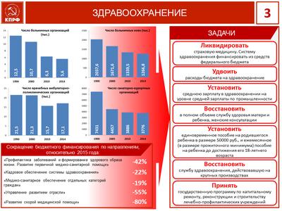 - ликвидировать страховую медицину вместе с фондами медицинского страхования и страховыми компаниями. Средства фонда консолидировать в бюджет. Перевести всю систему здравоохранения на государственное бюджетное финансирование;