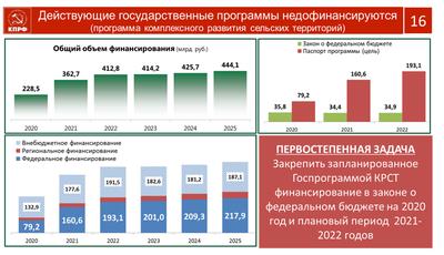 Но впереди у нас еще очень много задач и проблем, которые предстоит решить, ведь на пути реализации этой программы находится огромное количество либералов по-прежнему считающих, что без сельского хозяйства можно обойтись. Не без их участия сегодня, к сожалению, мы не видим в бюджете паспортных объемов финансирования госпрограммы в 2020-2022 годах.