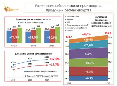 В результате в 2017 году прибыль сельскохозяйственных организаций снизилась на 22,3%, а убытки увеличились на 52,3%. Потери растениеводческих предприятий составили 120 млрд. рублей – фактически половину всего объема федеральной господдержки сельского хозяйства. И это лишь по предприятиям, занимающимся производством пшеницы, кукурузы и сахарной свеклы.