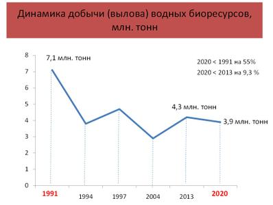 Объемы добычи рыбы и морепродуктов останутся на существующем уровне (4,2 млн. тонн), роста добычи не прогнозируется. А начиная с 2017 года планируется резкое снижение объемов добычи (вылова), что совершенно недопустимо!