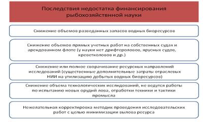 Отсутствие адекватного финансирования рыбохозяйственной науки отбросит развитие отрасли назад, нивелируя тем самым многие достижения российских ученых в соответствующей отрасли.