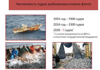 Если в 1991 году численность судов, составляющих рыбопромысловый флот, составляла около 7 тысяч единиц, то сегодня эта цифра сократилась в 3 раза и продолжает сокращаться.