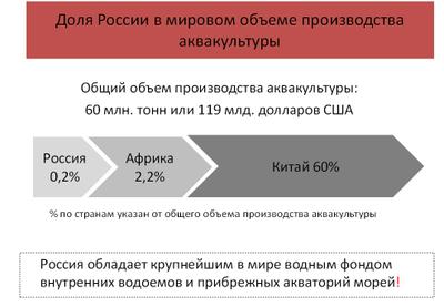 В Советское время мы работали на этом направлении на уровне современного Китая 20 лет назад. А сегодня скатились до 150 тысяч тонн. И это при том огромном потенциале, которым обладает наша страна с ее огромными морями и внутренними водоемами. В мире 56% в общей структуре вылов имеет аквакультура, у нас 3-4%.