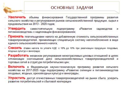 Нам сегодня понятно, что надо делать, начиная от снижения ставки НДС до 10 процентов по плодовой продукции. Все крупные предприятия, ассоциации выступили в поддержку соответствующего законопроекта, который мы внесли. Но Минфин опять плоско смотрит на проблему, ссылается на недополучение соответствующих налоговых поступлений, от Правительства РФ получено отрицательное заключение.