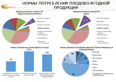 Законодательно утвержденная продовольственная корзина в Российской Федерации определила, что взрослый трудоспособный человек должен потреблять не менее 60 килограмм плодов и ягод, дети должны потреблять ещё больше - 118 кг в год.