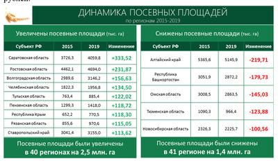 Остальные же регион за тот же период продолжили скатываться назад и снизили посевные площади почти на полтора миллиона гектаров.