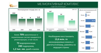 К предложенным мерам по развитию мелиорации вопросов не меньше. За 10 лет увеличить площадь мелиорируемых земель всего на 1,6 млн. га? Тот же Китай эту площадь вводит меньше чем за два года. Поэтому речь должна идти об организации фактического орошения на всех орошаемых землях (4,67 млн. га) с дальнейшим выходом на стратегический для нас уровень 13,5 млн га мелиорируемых земель.