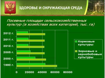 - дальнейшее сокращение общей площади сельскохозяйственных угодий (сегодня заброшено более 41,5 млн. гектар пахотных и более 90 млн. гектар пастбищных угодий);