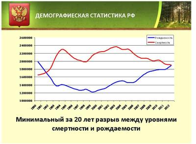 Если посмотреть статистику по основным демографическим показателям, то очевидно прослеживается положительная динамика. В 2012 году, по данным Росстата, впервые за много лет разница между количеством «ушедших» наших с Вами сограждан и родившихся практически отсутствует.