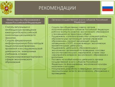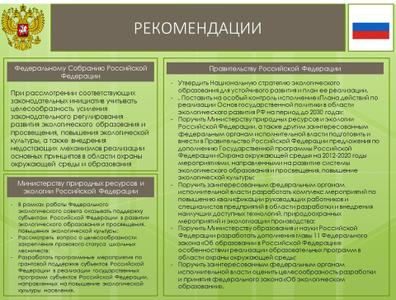 Также верным шагом должно стать развитие законодательного регулирования реализации образовательных программ в области охраны окружающей среды.