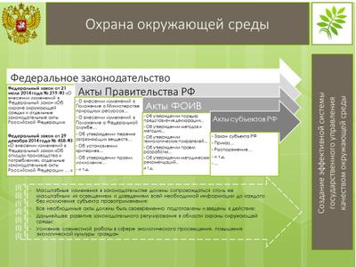 Все перечисленные выше законодательные решения эффективно решают целый ряд самых наболевших проблем в сфере охраны окружающей среды и обеспечения рационального природопользования.