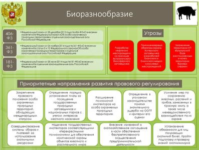 В отношении законодательных решений, принятых в целях сохранения биологического разнообразия на территории России, отмечу следующее.