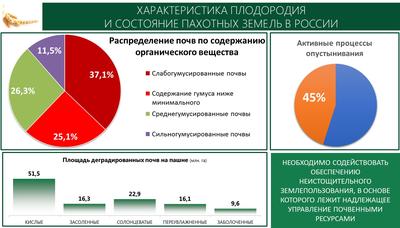Сегодня в стране 51,5 млн. га кислых почв, заболоченных почв – почти 10 млн. га, переувлажненных – 16,1 млн. га, появились пустыни!