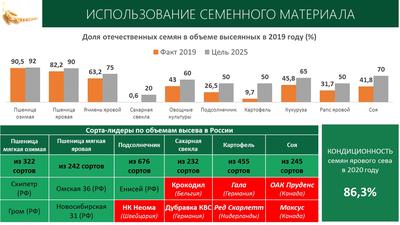 Сахарная свекла – меньше одного процента отечественных семян, картофель – 9,7%, подсолнечник – четверть, рапс – треть, овощи, кукуруза и соя – меньше половины! И это при том, что в реестр селекционных достижений отечественных сортов внесено в три-четыре раза больше, чем иностранных, и многие из них отличаются выдающимися свойствами и высокой урожайностью.