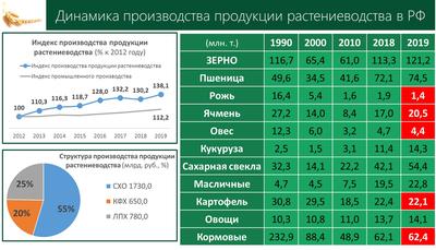 За период реализации Государственной программы развития сельского хозяйства на многих направлениях производства продукции растениеводства мы смогли удержать позитивную динамику. Индекс производства продукции за период с 2012 года составил 138,1 пункта, что в 3 раза выше индекса промышленного производства за тот же период (112,2 пункта). Валовые сборы пшеницы, кукурузы и в целом зерновых, сахарной свеклы, масличных культур и овощей прирастают, опередив показатели контрольного для нас 1990 года.