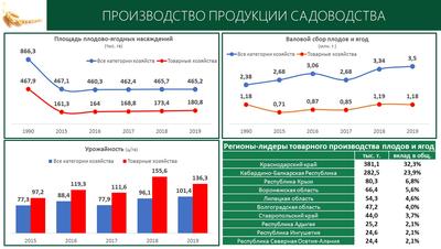 По данным статистики в 2019 году были произведены рекордные 3,5 млн. тонн плодов и ягод. Но 66% этого количества приписано личным подсобным хозяйствам, реальное положение которых мы все хорошо себе представляем. В товарных же хозяйствах мы видим лишь немногим более одного миллиона тонн продукции, поступившей в обращение на рынок.