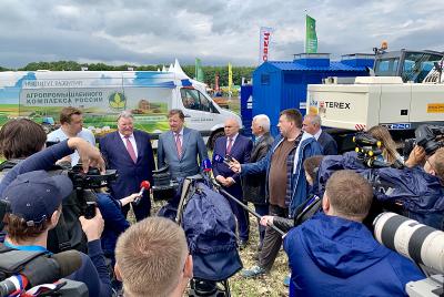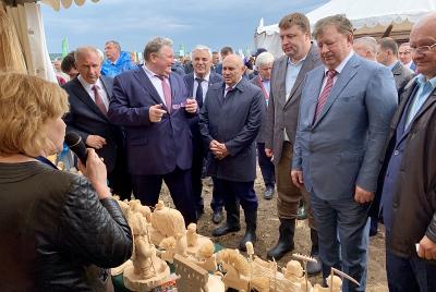 В.И. Кашин выступил перед участниками мероприятия с приветственным словом, после чего в составе почетной делегации ознакомился с новейшими образцами отечественной сельскохозяйственной техники, а также с выставочными стендами предприятий АПК Республики.