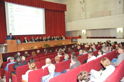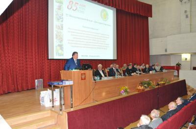 В.И. Кашин зачитал поздравительный адрес от имени Председателя Государственной Думы С.Е. Нарышкина и выступил с докладом, в котором остановился на основных направлениях развития отрасли отечественного садоводства, питомниководства и Института, в частности, научная деятельность которого началась с Московской плодово-ягодной опытной станции, созданной в 1930 году.
