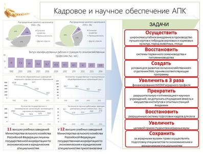 В свою очередь в части научного обеспечения агропромышленного комплекса необходимо отметить, что количество государственных и некоммерческих организаций, занимающихся научными исследованиями с 1990 года сократилось с двух до полутора тысяч, а численность научных работников уменьшилась почти на треть.