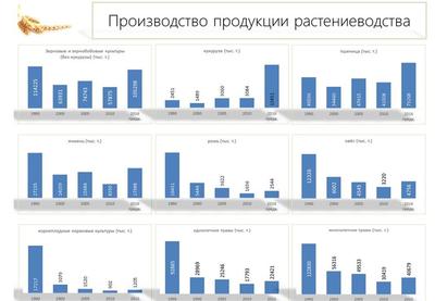 В результате сократилась и площадь посевов сельскохозяйственных культур с 117,7 млн. га в 1990 году до 79,9 млн. га в 2016 году. Такая же ситуация с многолетними насаждениями – за 25 лет площадь многолетних насаждений семечковых в хозяйствах всех категорий сократилась в 2,2 раза, косточковых – в 1,4 раза, орехоплодных – в 2,8 раза. Площадь виноградников уменьшилась в 1,7 раза.