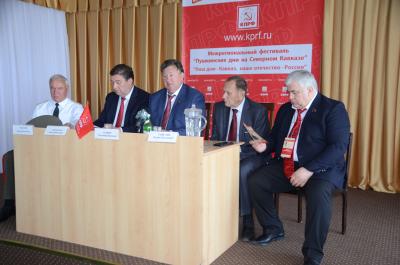 В пресс-конференции приняли участие депутат Госдумы РФ Казбек Куцукович Тайсаев, генерал-лейтенант, председатель общероссийского общественного движения «В поддержку армии, оборонной промышленности и военной науки» Виктор Иванович Соболев; первый секретарь Ставропольского крайкома КПРФ, вице-спикер краевого парламента Виктор Иванович Гончаров, председатель комитета Думы Ставропольского края по аграрным и земельным вопросам, природопользованию и экологии, член фракции КПРФ в ДСК, Герой труда Ставрополья, председатель колхоза «Терновский» Иван Андреевич Богачёв.
