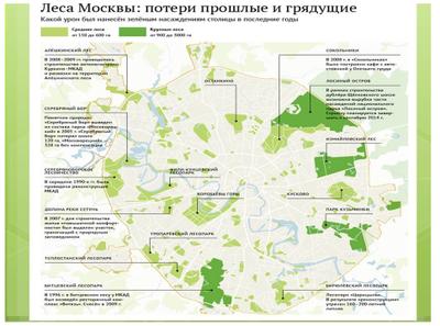 В настоящее время в условиях значительного разрастания городской территории лесопарковые зоны вокруг Московской агломерации сократилась до 70 тыс. га.