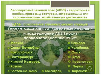 - введения ясного и непротиворечивого правового определения лесопаркового зеленого пояса;