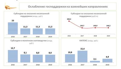 Мы серьезно просели по субсидиям на оказание несвязанной поддержки, субсидиям в молочном скотоводстве, по КАПЕКСам, и т.д. По этим позициям, чтобы выйти на уровень хотя бы 2016 года, нам нужно удвоение текущего финансирования.