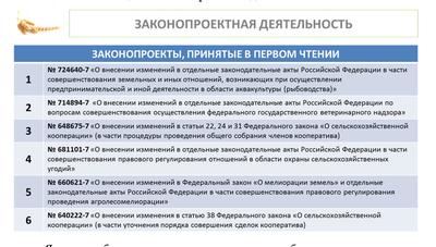 Я хочу поблагодарить всех, кто активно работает на направлениях законотворческой работы. Хочу доложить, что в портфеле Комитета сегодня находится 12 законопроектов. Шесть из них уже приняты в первом чтении и являются приоритетными с точки зрения окончательного принятия до конца текущего года. Еще по семи законодательным инициативам наш Комитет является соисполнителем.
