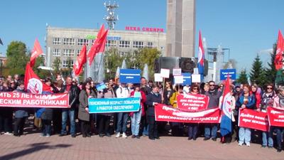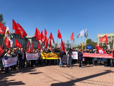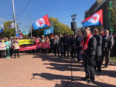 22 сентября в Иркутской области КПРФ совместно с профсоюзами провела акции протеста против пенсионной реформы. В Иркутске митингующие собрались на площади 50 лет Октября. В митинге приняли участие представители профсоюзных организаций из городов и районов Приангарья.