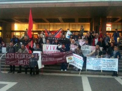 Все левые силы присоединились к этой инициативе и сплотились в такой важный день. Манифестанты также осудили войну против Донбасса и репрессии против оппозиции.