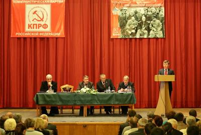 Первым прозвучал доклад заместителя Председателя ЦК КПРФ Д.Г. Новикова. В начале своего выступления он познакомил присутствующих со словами приветствия Г.А. Зюганова к участникам юбилейных мероприятий в Крыму.