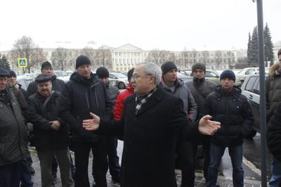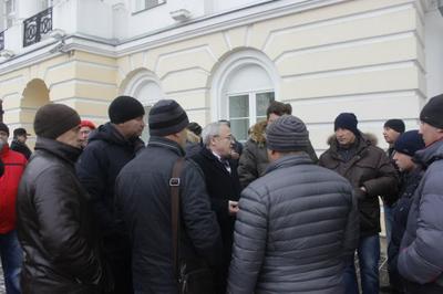 Видя, что народу собралось прилично, к водителям оперативно вышли и «единороссы» - заместитель председателя областной Думы В.В. Волончунас и председатель профильного комитета областной Думы Н.И Бирук. Депутаты выслушали собравшихся транспортников, и затем разговор продолжился уже в кабинете заместителя председателя Думы с участием членов Координационного Совета автоперевозчиков и депутата от КПРФ А.В. Воробьёва. Были подняты вопросы, касающиеся не только федеральной, но и региональной властей.