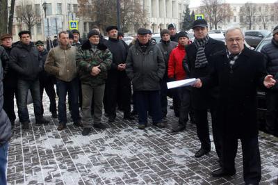 А 17 ноября в 9 утра более сотни водителей большегрузовых автомобилей вышли к зданию областной Думы, где была проведена встреча с депутатами фракции КПРФ.