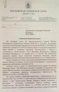 20 апреля руководитель фракции КПРФ в Мосгордуме Андрей Клычков направил обращение генпрокурору Юрию Чайке с просьбой провести проверку по факту несоблюдения столичным правительством положенных сроков создания согласительной комиссии Москвы и Подмосковья по изменениям в Генплан Москвы.